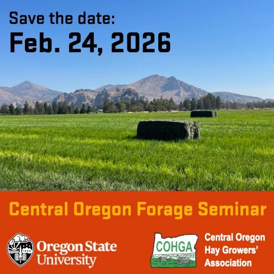 Central Oregon Hay Grower’s Association and OSU Extension present "Central Oregon Forage Seminar". This will be an excellent opportunity to learn about best practices and new research on hay and forage management, with presentations this year on hay markets, rodent management, irrigation technology and more.